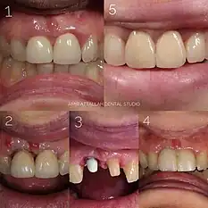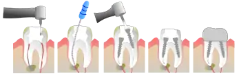 Après cicatrisation de la gencive dans laquelle a été insérée une vis en titane, le dentiste peut y installer une couronne afin de remplacer la dent manquante. Dans ce cas, la vis joue le rôle de la racine restante dans le cas d'une simple dent dévitalisée délabrée.