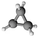 Le cyclopropane est un cycloalcane de formule brute C3H6 formé de trois atomes de carbone disposés de telle façon qu'ils forment une boucle, chaque atome de carbone étant aussi relié à deux atomes d'hydrogène. Les liaisons entre atomes de carbone y sont beaucoup plus faibles que les liaisons carbone-carbone habituelles. Ceci est dû à au fait que les atomes de carbone sont disposés en triangle équilatéral, formant des angles de 60°, soit près de deux fois moins de l'angle normal (109,5°). Le cyclopropane est donc beaucoup plus réactif que des alcanes acycliques ou que d'autres cycloalcanes tels que le cyclohexane ou le cyclopentane utilisé jadis comme anesthésique durant les guerres.