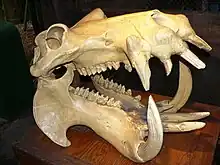 Sangliers, phacochères... possèdent de grandes canines recourbées vers l'extérieur de la bouche.