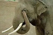 Ce sont les défenses d'éléphants qui alimentent le plus le trafic de l'ivoire. Elles servent à creuser le sol pour trouver de la nourriture ou lors des combats. Elles pèsent entre vingt-cinq et cent-vingt kilogrammes[1].