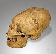 La déformation volontaire du crâne — ou, d'un usage plus courant « crâne allongé » — était une pratique culturelle dans un certain nombre de cultures sur tous les continents[1] : en Océanie ; en Afrique avec par exemple l'ethnie des Mangbetus (actuelle République démocratique du Congo) – qui avait une technique semblable à la déformation pratiquée dans l’Égypte antique par une certaine élite de la période amarnienne ; sur le continent européen chez les Burgondes, ou certains habitants de la région de Toulouse (jusqu'à la Première Guerre mondiale chez les Toulousains[2],[3]) ; en Asie, les Huns ; dans les Amériques chez les Mayas[4], les Incas, et plusieurs autres peuples andins, ou dans la péninsule de Paracas (Pérou) – chez une civilisation bien antérieure (800 av. J.-C. - 200 apr. J.-C.) à celle des Incas[5].