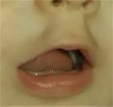 - ↑ Pechoux S, 5.5.3. Examen fonctionnel lingual, Incidence des habitudes de vie et des parafonctions dans les troubles algo-dysfonctionnels de l'appareil manducateur : étude effectuée sur une population d'adultes jeunes de la région de Cuenca (Équateur) , Thèse, Chir. Dent., Nancy (France), 2007 : 106