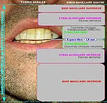 - ↑ Béance dentaire : espace vertical compris entre une dent supérieure et son antagoniste inférieure, lorsque les deux arcades dentaires sont en intercuspidation maximale volontaire (arcades en occlusion).