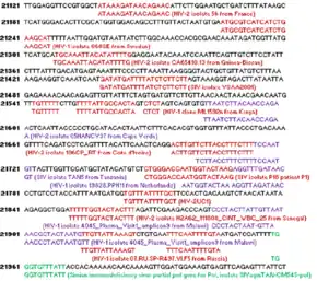 Le Pr Luc Montagnier, co-découvreur du VIH régulièrement mis en cause pour des déclarations pseudo-scientifiques ou jugées farfelues, suggère qu'entre les nucléotides 21 120 et 22 000 du SARS-Cov-2, il existe un assemblage non pas de 4 mais d’au moins 12 différents fragments du virus VIH-1, VIH-2 et SIV datant de différentes époques[124]. Les nucléotides compris entre 21 120 et 22 000 concernent le NTD de la protéine S du SARS-CoV-2. Le NTD contient des récepteurs permettant de se lier à des globules blancs[125],[126]. Luc Montagnier émet l'hypothèse selon laquelle le SARS-CoV-2 serait issu d'une manipulation génétique ayant adjoint des morceaux de génome du VIH. La communauté scientifique reste circonspecte[123]. Les 12 séquences identifiées par le Pr Luc Montagnier sont très courtes, de l’ordre de 25 nucléotides chacune.