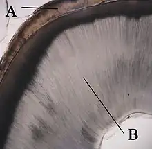 - ↑ Darling AI, « The Distribution of the Enamel Cuticle and Its Significance », Proceedings of the Royal Society of Medicine, vol. 36, no 9, , p. 499–502 (PMID 19992694, PMCID 1998608)