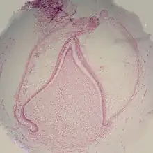 - ↑ Luan X, Ito Y, Diekwisch TG, « Evolution and development of Hertwig's epithelial root sheath », Developmental Dynamics, vol. 235, no 5, , p. 1167–80 (PMID 16450392, PMCID 2734338, DOI 10.1002/dvdy.20674)