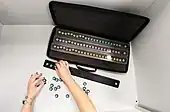 - le test de Holmgren : dans ce test, l'individu susceptible d’être daltonien doit rapprocher des brins de laine selon la teinte sur un fond gris ;