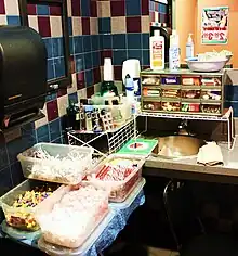 La dame pipi veille au bon approvisionnement en produits nécessaires à la bonne utilisation des toilettes, à savoir principalement : le papier toilette, le savon pour les lave-mains et les produits déodorants.