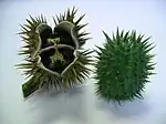 Le fruit est une capsule, mesurant de 5 à 10 cm de diamètre, recouvert d'épines effilées et de trichomes. Il renferme jusqu'à 500 graines brunes.