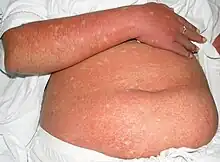 | Symptômes | Fatigue, céphalée, arthralgie, myalgie, nausée, adénopathie, vomissement, adynamie (en), anorexie, éruption maculopapuleuse (en), bradycardie et hémorragie |