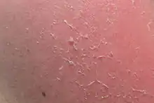 Desquamation de l'épiderme après un coup de soleil.
