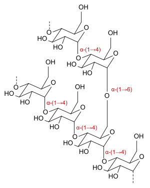 Les dextrines sont des mélanges de gluco-oligosides ou oligosides de glucose en chaînes linéaires dont les unités de glucose sont liées par des liaisons osidiques du type α-(1,4). Ces chaînes sont reliées entre elles par des liaisons osidiques α-(1,6). Les amylopectines ramifiées et le glycogène contiennent eux-mêmes des liaisons osidiques α-(1,6) que les α-amylases ne peuvent pas hydrolyser : par conséquent leur digestion produit un mélange de dextrines.