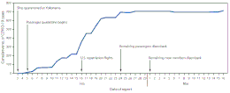 À bord, si les premiers cas détectés étaient des passagers (devenus symptomatiques les 22 et ), le virus avait sans doute déjà été transmis à d'autres passagers puis à des membres de l’équipage, notamment dans le service chargé de la restauration[22].