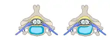 Localisation du disque par rapport à deux vertèbres et aux nerfs spinaux.