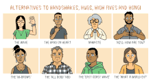 - la salutation par le coude (au lieu de la poignée de main ou de la bise pour saluer)[40].