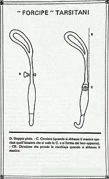 Le forceps Tarsitani inventé en 1843 est très semblable au forceps classique français du début du XIXe siècle avec la différence que chez Domenico Tarsitani, les tiges sont interchangeables en ceci que le pivot peut être fixé indifféremment sur l'une ou l'autre branche de l'outil en le rendant ainsi le forceps le plus rapide à utiliser. Ce principe sera par la suite utilisé par le Forceps de Francesco Rizzoli, version encore améliorée du Forceps Tarsitani, dans les années 1860.