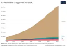 - ↑ (en) « More than 80 billion land animals are slaughtered for meat every year », sur Our World in Data (consulté le )