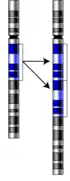 - interchromosomique : le fragment est dupliqué sur un autre chromosome à la suite d'une translocation chromosomique.