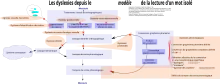 - la dyslexie mixte[30] résulte d'un dysfonctionnement qui concerne la voie phonologique et la voie lexicale à des degrés différents. Des troubles de la mémoire à court terme lui sont associés avec la présence de troubles du langage.