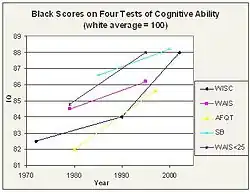 - ↑ William T. Dickens and James R. Flynn, "The IQ Paradox: Still Resolved," Psychological Review 109, no. 4 (2002).