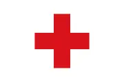 - Le drapeau de la Suisse, croix blanche sur fond rouge (couleurs inversées ; pour cette raison, la croix rouge possède exactement les mêmes proportions que la croix fédérale suisse, à savoir cinq carrés et 1⁄6 de carré à l'extrémité de chaque branche) ;