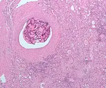 L'embolisation peut également être utilisée dans le traitement de certaines tumeurs. Un radiologue interventionnel peut ainsi emboliser au niveau cervico-céphalique des méningiomes[4],[5], des paragangliomes[6],[5], ou encore des angiofibromes naso-pharyngés[5]. L'embolisation de certaines tumeurs rénales est également pratiquée.