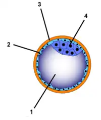 À la fin du quatrième jour après la fécondation, le suicide ou apoptose de certaines cellules de la masse cellulaire interne provoque le phénomène de cavitation en creusant la morula par apparition d'une cavité à contenu liquidien : le futur blastocèle.