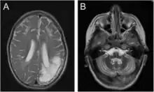Encéphalomalacie chez un garçon de 7 ans : en imagerie par résonance magnétique (à gauche) et en tomodensitométrie (à droite)