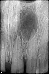 une infection bactérienne de la dent visible sur la radiographie dentaire
