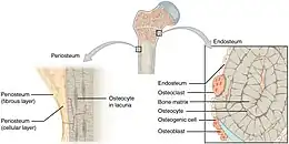 - (en) Cet article est partiellement ou en totalité issu de l’article de Wikipédia en anglais intitulé « Endosteum » (voir la liste des auteurs).