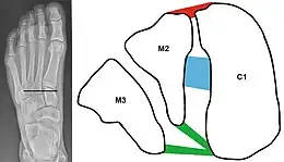 - ↑ « Intercuneiform instability and the gap sign », Foot Ankle Int, vol. 20, no 9, , p. 606–9 (PMID 10509690, DOI 10.1177/107110079902000912)