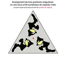 En arrangeant trois molécules identique d'une protéine quelconque, on peut former un triangle équilatéral – symétrique par rotation de 120°. Ceci est la plus petite unité possible symétrique pour former une capside icosaédrique. Comme un icosaèdre est formé de 20 triangles équilatéraux, il faut 3 × 20 = 60 molécules au moins pour faire l'icosaèdre le plus simple. Ce nombre minimal de 60 est désigné par le nombre de triangulation T = 1. De plus grandes capsides plus complexes ont des multiples entiers de 60 molécules, c'est-à-dire couramment 180 (T=3), 240 (T=4) ou 960 (T=16). Les nombres de triangulation géométriquement possibles sont donnés par la formule T = h² + hk + k² où h et k sont des nombres entiers.