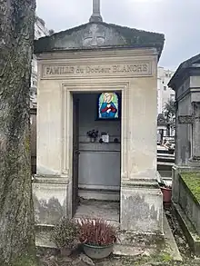 Il meurt dans sa propre clinique, d'un cancer[1]. Il est enterré au cimetière de Passy[17]. Blanche avait un frère, Antoine, qui a connu une brillante carrière médicale à Rouen[18]. De son mariage avec Marie Madeleine Sophie Bertrand[α 4], en 1820, il a eu trois enfants : l’aliéniste Émile Blanche, qui a épousé sa cousine Félicité Baron-Chatillon (1820-1895) ; Alfred (1823-), architecte à Paris et Claire, qui a épousé l’architecte Léon Ohnet.