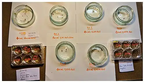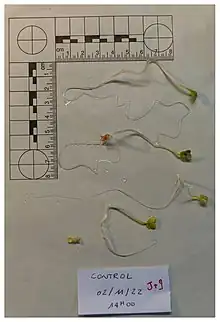 Bioessai qualitatif avec graines et eau prélevée dans la Vilaine à Rennes lors d'un chantier de biohacking (octobre 2022)