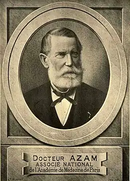 Eugène Azam (1822-1899) est un chirurgien bordelais, professeur de médecine qui s'intéresse à la psychologie et à l'hypnose.