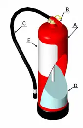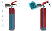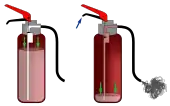 L'extincteur contient un agent qui peut être projeté sur une flamme par l'action d'une pression interne. Cette pression est fournie par une pression permanente ou par la libération d'un gaz (dioxyde de carbone) contenu dans la cartouche.