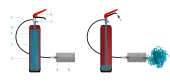 - Extincteur au CO2 : détails (goupille, signalétique) Gris.