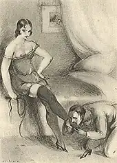 « Mirabeau mentions in his Erotika Biblion that modern Greek women sometimes use their feet to provoke orgasm in their lovers. I may add that simultaneous mutual masturbation by means of the feet is not unknown to-day, and I have been told by an English shoe-fetichist that he at one time was accustomed to practice this with a married lady (Brazilian)—she with slippers on and he without—who derived gratification equal to his own. »