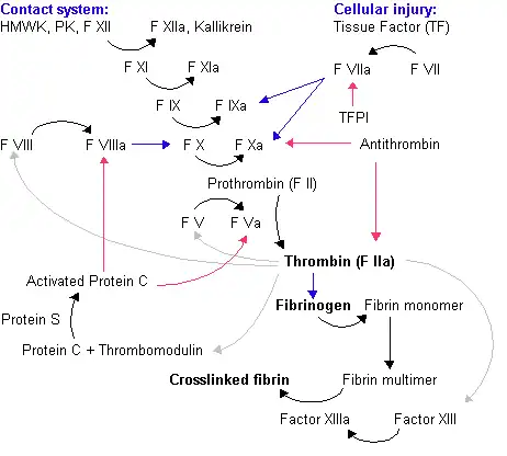 - ↑ Hultin MB, Jesty J. The activation and inactivation of human factor VIII by thrombin: effect of inhibitors of thrombin. Blood. 1981 Mar;57(3):476–482