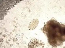 À la période d'état (à partir du 3e mois d'infestation), l'hyperéosinophilie est inconstante, mais la découverte des œufs dans les selles devient possible par un examen parasitologique. Ce qui donne un diagnostic de certitude dans 35 % des cas environ. En cas de négativité, on peut répéter cet examen plus tard, ou rechercher les œufs par tubage duodénal.