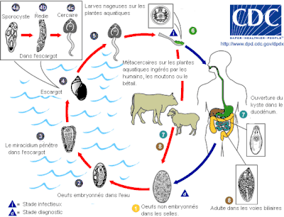 Le cycle complet de développement est de l'ordre de 6 mois (3 mois de cycle exogène de l'œuf aux métacercaires et 3 mois de cycle endogène de l'ingestion des métacercaires à la présence de douves adultes dans les canaux biliaires).