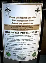 Le contrôle du virus est réalisé par la lutte contre les moustiques, par l’élimination des gîtes de larves de moustiques, les traitements larvicides des zones de reproduction active et l’incitation à l'usage personnel des répulsifs. Le public est également invité à passer moins de temps à l'extérieur, à porter des vêtements longs couvrant, appliquer des produits contenant du N,N-diéthyl-3-méthylbenzamide et à faire en sorte que les moustiques ne puissent pas pénétrer dans les bâtiments[75].