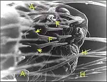 Aphonopelma seemanni possède des filières sur ses pattes. L'hypothèse retenue pour l'origine de ces filières est que ces appendices étaient initialement utilisés comme aides à l'escalade et ont évolué par la suite pour la construction de toile.