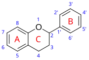 Squelette numéroté des flavonoïdes (+)-catéchine guibourtinol