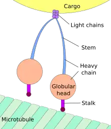 Le mouvement antérograde (lent ou rapide) des vésicules de transport le long des microtubule est assuré par les kinésines[5],[2]. Le mode lent fait intervenir des kinésines de différents types[9] ; mais le mécanisme qui déclenche les interruptions du transit demeure inconnu.