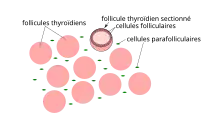 Le follicule thyroïdien, en dehors d'une majorité de cellules folliculaires, contient 1 à 2 % de cellules dites parafolliculaires (ou cellules C), produisant la calcitonine. Elles n'ont cependant jamais de contact avec la colloïde.