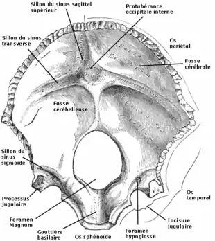 - Foramen grand rond, entre l'endocrâne et l'exocrâne