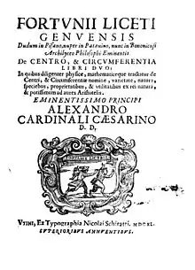 Fortunio Liceti (en latin Fortunius Licetus) (né le à Rapallo, dans la république de Gênes et mort le à Padoue) est un philosophe, médecin, universitaire et savant italien du XVIIe siècle.