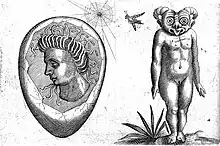 L'œuf de 1569 contenant une tête d'homme a été décrit par Ambroise Paré sans commentaires (Des monstres et prodiges, chapitre IV). Liceti fait le tour de toutes les explications possibles. Un homme peut être assez fou pour s'accoupler avec une poule ; la poule a picoré de la semence humaine, du sang menstruel et des œufs de serpents ; la poule s'est accouplée avec un serpent ; si Dieu n'est pas en cause, le Diable lui, peut l'être[6].