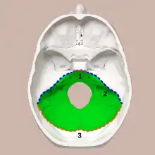 | 3 : Sillon du sinus transverse sur l'os occipital |